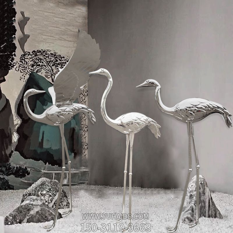 公園景區不銹鋼創意仙鶴雕塑.圖片展示