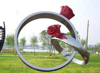 在競爭日益激烈的今天現代的城市生活創造出了更多的競爭型人才,人們的壓力隨著社會的發展與日俱增。生活在城市之中有時候難免會覺得壓抑,此時,優美的城市環境就起到了緩解人們心情的作用,而城市中的千姿百態的雕塑給城市這個鋼筋水泥的世界帶來了更多的生機。城市各個場合的景觀不銹鋼雕塑更加的注重人情味與藝術性相結合,創造出與環境相結合給予人們更加豐富的精神生活。玫瑰戒指不銹鋼公園景觀雕塑 優秀的景觀不銹鋼雕塑作品中,雕塑本身的大小非常重要。和人身高相近的雕塑作品可以使人感到親近,大型的雕塑作品占據著很大的空間并且激活了它周圍的空間,不銹鋼雕塑作品不再使用基座,而是直接放置在地面上也能夠增加作品本身的親近感,