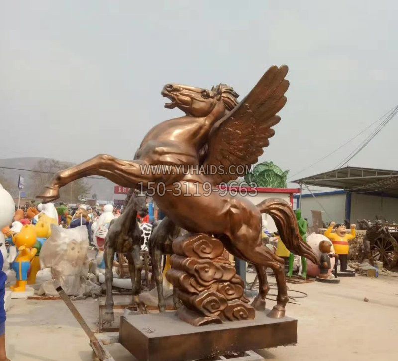 銅雕祥云飛馬雕塑是傳統文化的經典體現,它通常刻畫的是太陽神、天帝、靈犀牛、祥云飛馬等象征吉祥、威嚴的神話形象,是古代皇室建筑裝飾的重要組成部分。銅雕祥云飛馬雕塑的制作工藝復雜,需要從材料準備、成型到最后的鍍鉻等一系列工序制作而成。