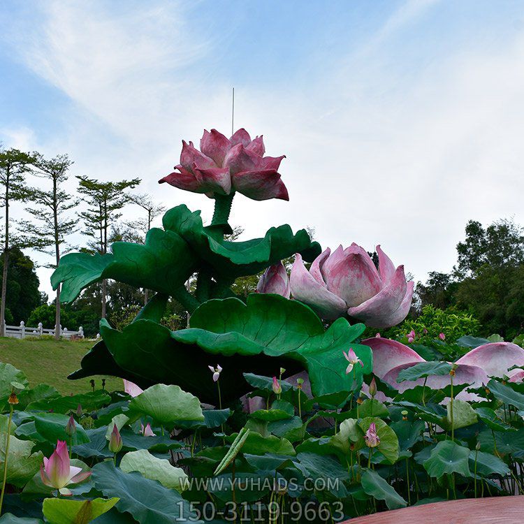 池塘荷花銅雕作品的設計和制作通常都包含了多種復雜的技術,比如削,焊接,機械裝配,熱處理,金屬烤漆等。用銅來雕刻荷花,不但可以保持荷花的精美,而且還可以展現出荷花的開放狀態(tài),以及荷花的運動狀態(tài)和曲線表現力。