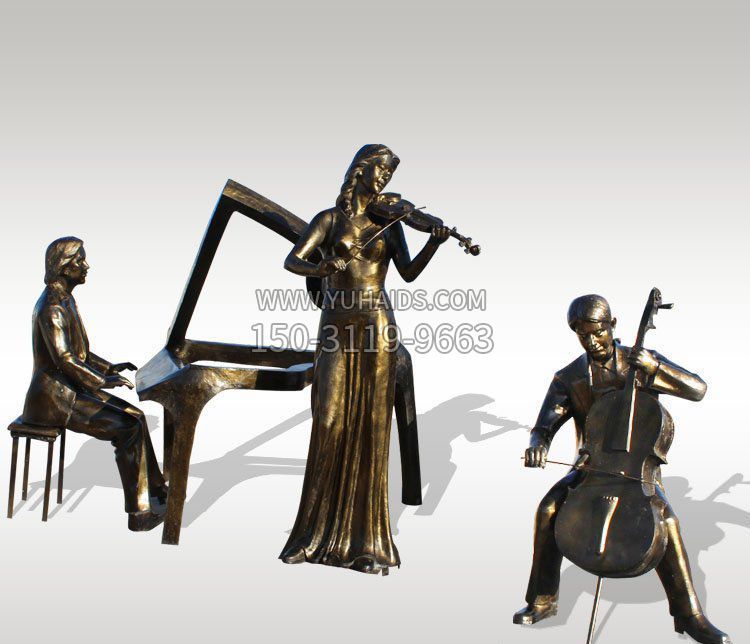抽象彈鋼琴人物銅雕從外觀來看,以抽象的方式表現人物與鋼琴等物體的關系,可以表現出人物凝神彈奏的動作,也可以表現出鋼琴的浪漫氣息。從材料上來看,抽象彈鋼琴人物銅雕通常由青銅或銅材料制成,青銅的質地比較細膩,可以表現出更多的細節,更能凸顯出這個作品的藝術性;而銅材料的質地比較粗糙,更能體現出鋼琴的浪漫氣息。